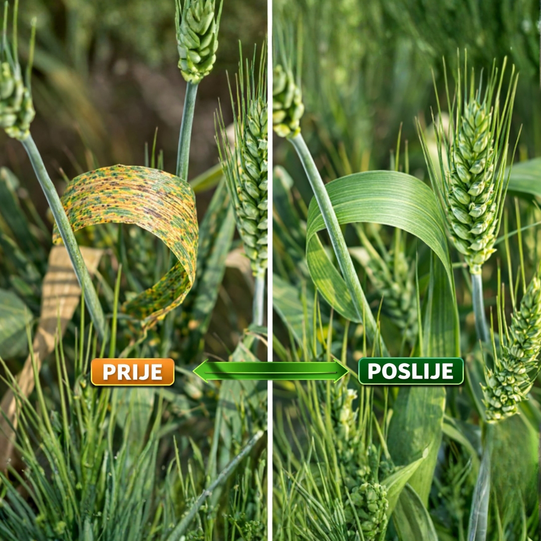 Visokoefikasni ekološki biofungicid i repelent namijenjen preventivnoj zaštiti pšenice, ječma, tritikalea, ovsa i raži. Pruža snažnu zaštitu od fuzarioza, rđe i pepelnice, bez karence i ostataka pesticida. Osigurajte zdrav klas i vrhunski kvalitet zrna uz preparat registrovan za ekološku proizvodnju.